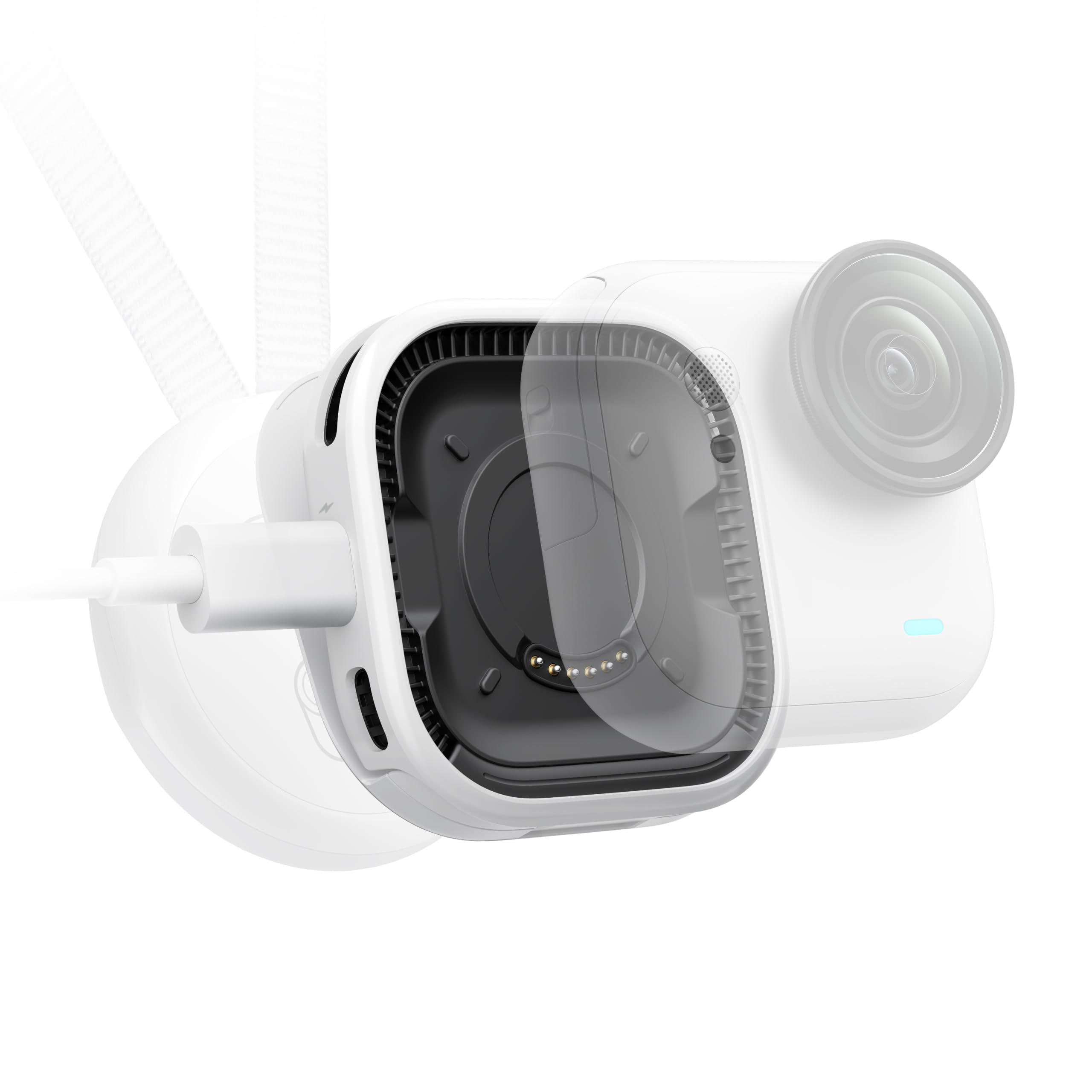 - Magnetic base to mount the standalone camera, with a USB-C port to connect a power bank for a longer runtime.