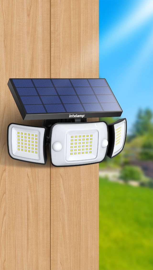 intelamp Solar Security Light Outdoor Motion Sensor 6000mAh