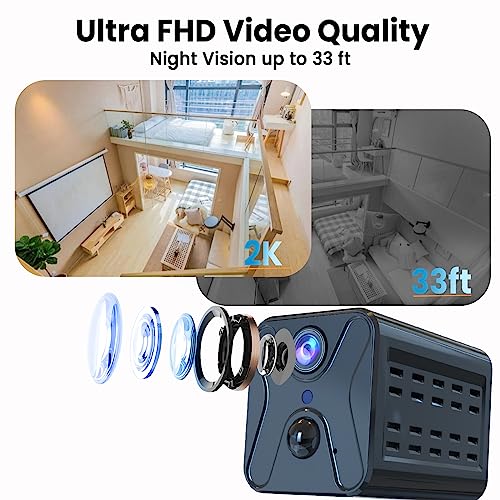 【2K Video and Infrared Night Vision】This wireless Indoor Mini camera provides a 2K quality video and image with a wide 140-degree angle view. Regarding night vision,this home security camera offers clear visibility at all times, day or night. The included app allows for easy access to recorded video from anywhere, anytime.