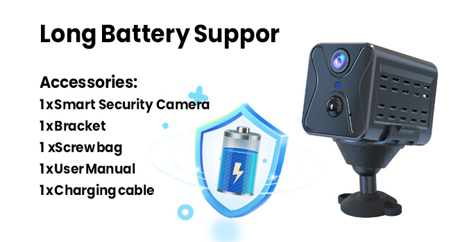 【100% Wireless Security and Rechargeable Battery】There's a wireless battery camera with a built-in premium rechargeable battery. It’s a true low power consumption home security camera. No need for any wires, can be installed wherever you want. The scene inside and outside the home is clear at a glance. The installation method is also very simple, as long as the bracket is in place, your camera can be removed or installed at will.