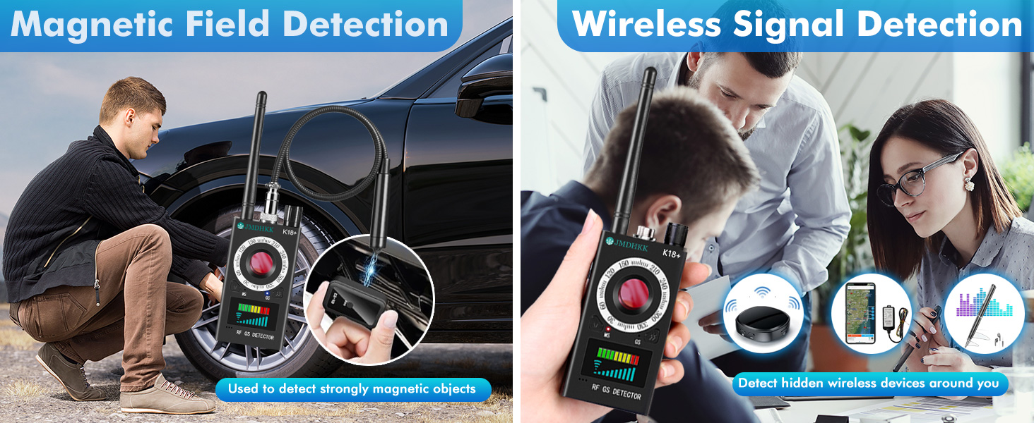 - <b>RF Detector& Camera Finder incorporates 4 features in one device including RF Signal Bug Detector, Magnetic Field Detector GPS Detector,Camera Lens Finder Camera Detector,and AI Auto Scan.It detects WiFi Cameras, IP Cameras, Hidden Miniature Cameras,wireless Audio Bugs,GSM bugs,Body Wires,Wiretaps,Mobile Phone Tapping, GPS Trackers,Magnetic GPS Tracking Devices.Fully protect your privacy.