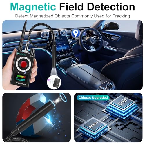 Bug Detector & RF Signal Scanner for Suspicious Wireless Devices:Equipped with RF signal detection, the K20 scans and alerts you to wireless audio bugs, Wi-Fi cameras, Bluetooth trackers, and other unknown RF signal sources. Protect your home, office, or car from potential eavesdropping and unauthorized surveillance with this effective bug detector and RF scanner.