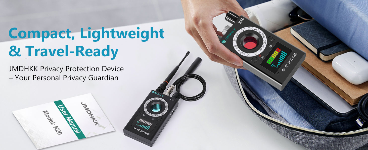 Hidden Camera Detector for Personal Privacy Protection:The JMDHKK K20 features a powerful hidden camera detector that uses flashing red light and a special optical filter to visually reveal concealed lenses through light reflection. Whether you're staying in a hotel, short-term rental, or guest room, this camera finder helps you scan mirrors, smoke detectors, clocks, or power outlets for hidden cameras. A must-have for women, travelers, and professionals concerned about privacy.