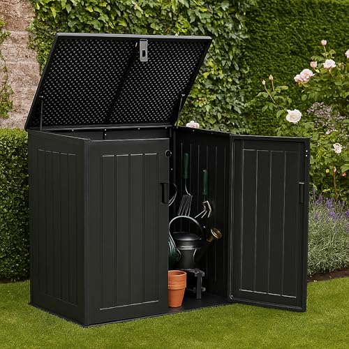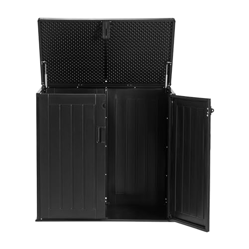 - DOUBLE DOORS & GAS LIFT LID – Dual gas-assisted lift arms allow for easy opening and secure lid support, with front doors for additional quick access to your gardening, BBQ, and other outdoor contents.