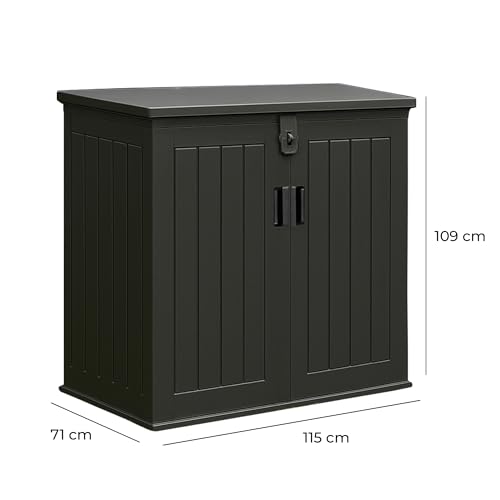- WEATHER RESISTANT – Large plastic cabinet protects garden and outdoor items from rain, snow, frost, and harsh sunlight ensuring contents remain safe and dry and your garden tidy and organised all year round.
