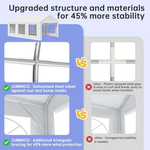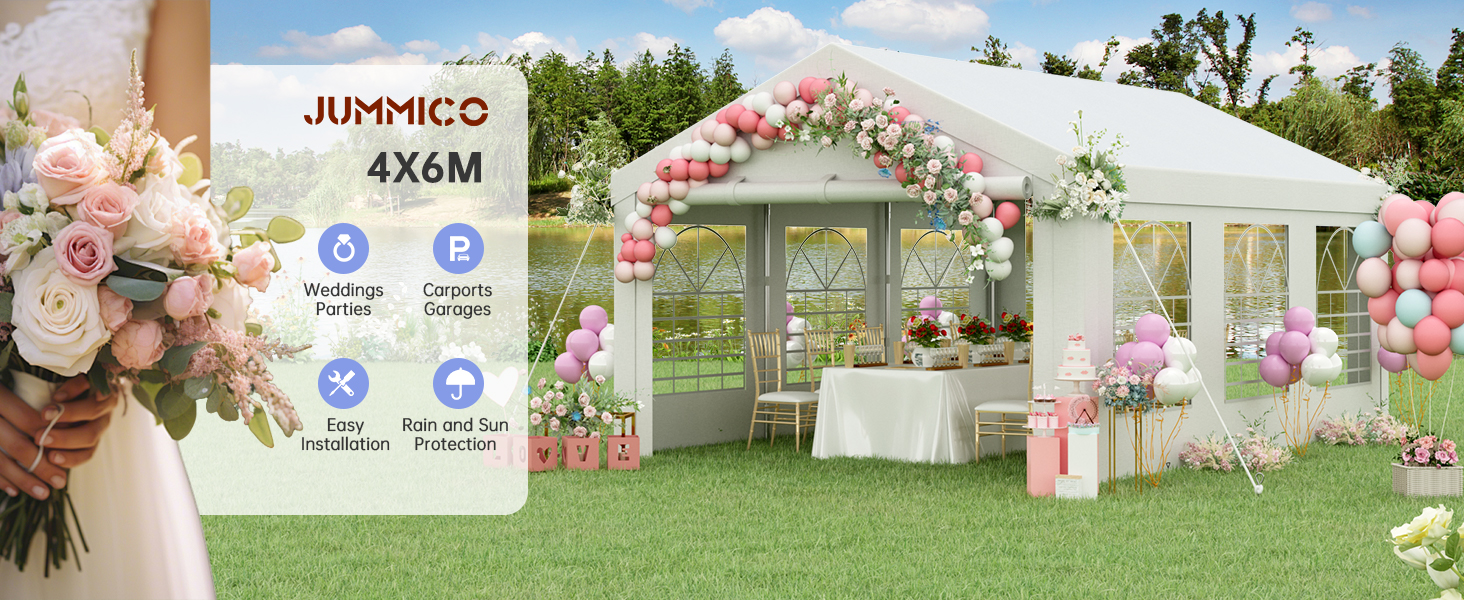 JUMMICO Large 4m x 6m Gazebo with Sides, Heavy Duty Marquee Tent with Galvanised Steel Frame, Waterproof PE Canopy for Wedding, Garden Parties and Outdoor Events, White