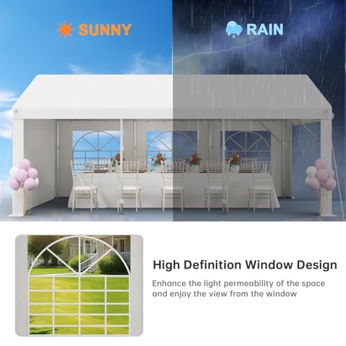 DETACHABLE SIDEWALLS & FLEXIBLE ACCESS: Comes with six windowed side panels and zipped doors at both ends. Open up for airflow on hot days, or close the marquees for privacy and secure shelter.