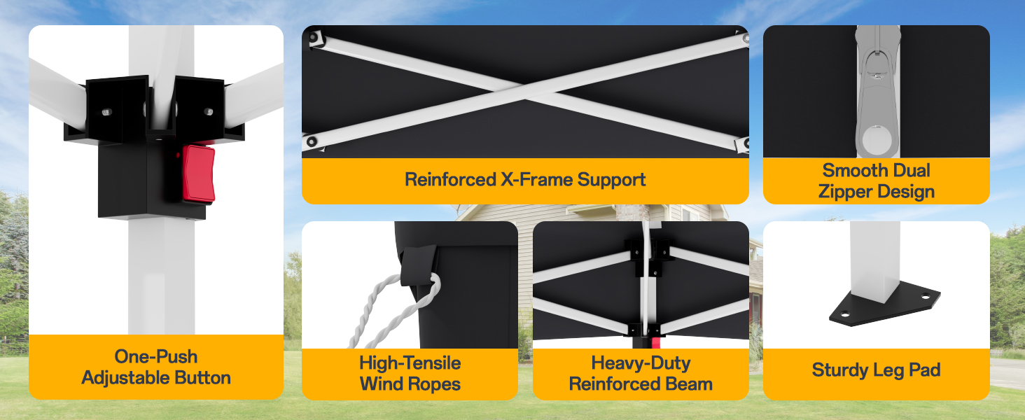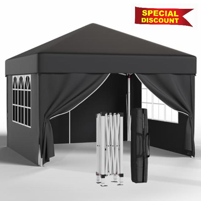 【Customisable Sidewalls】 4 removable walls – 2 with clear windows for light, 2 with zip doors for easy access. Mix and match for your perfect setup.