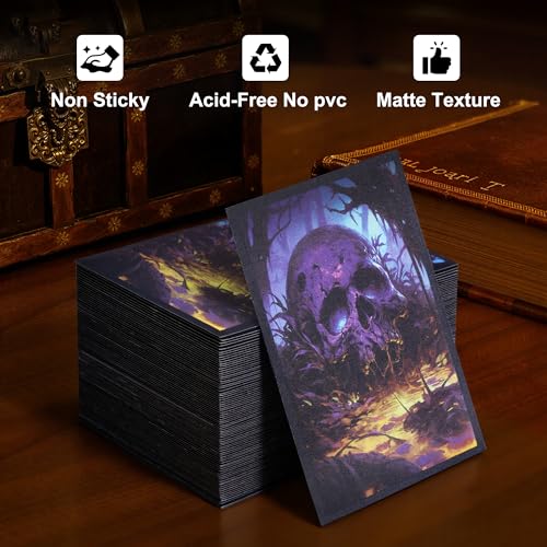 KABINKA MTG Card Sleeves – 100 Standard Size Pack Clear Front & Matte Finish Back with Skull, Premium Sleeves for Magic The Gathering TCG