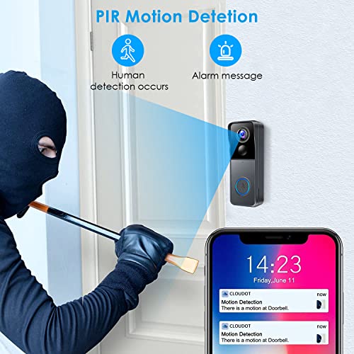 【Two -way Audio & Instant Notifications】WiFi smart video doorbell camera if you decide to press the bell button then you will get a notification on your phone app and you will be able to speak live to whoever is at your door. You can set the wireless doorbell camera app to send you notification for every detected motion.When someone rings the door bells ,you get a full screen message on you phone from door cameras to pick up like a phone call.