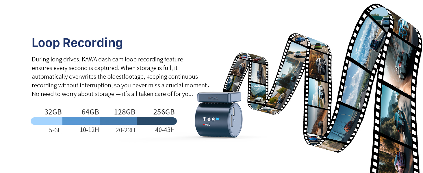 - 【Upgrade to the Smarter, Tinier Dash Cam Front】 KAWA Upgraded Dash Cam as a true tiny dash cam and mini dash cam, it fits seamlessly behind your rearview mirror, leaving zero windshield mess for safer, distraction-free driving. Whether you need a reliable dash cam front for daily commutes or a compact car camera dashcam for long trips, this upgrade delivers more power in a smaller package!