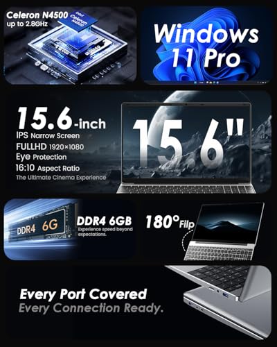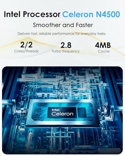 【Balanced Performance】Equipped with the latest generation Celeron N4500 processor (4 MB cache, frequency up to 2.8 GHz) and an integrated UHD Graphics GPU that supports 4K video decoding, this laptop loads applications smoothly and delivers stable performance. Pre-installed with Windows 11 Pro, it allows you to switch between tasks with ease.