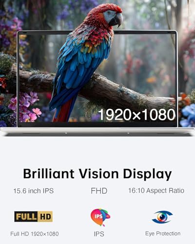 【15.6-inch Laptop with 180° Rotatable Screen】This laptop features a 15.6-inch anti-glare 16:9 Full HD IPS (1920 x 1080) display. Thanks to its unique 180° rotating design, it easily adapts to various situations. Whether you're browsing the web, gaming, or watching videos, the screen's sharpness and brightness are sure to impress.