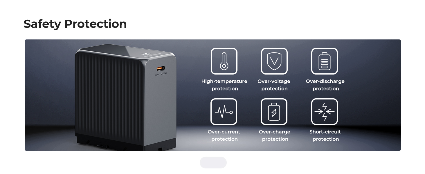 - Multiple Ports Options: With 2* USB C ports, USB-C1/C2:Input/Output:5V/3A 9V/3A 12V/3A 15V/3A 45W (Max) , one USB-A: Output: 5V/3A, 9V/2.5A, 22.5W (Max); Features over-discharge protection, over-current protection, over-voltage protection, high-temperature protection, low-temperature protection, short-circuit protection, and over-charge protection.