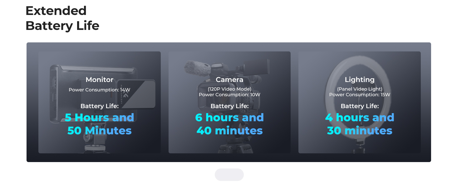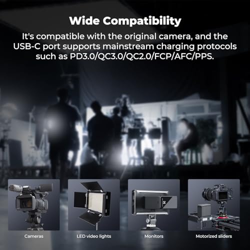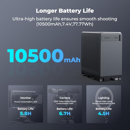 - Battery Capacity: With a high standard capacity of 10500mAh, 7.4V, 77.77Wh, effortlessly meets the demands of extended, high-intensity operation for camcorder, cameras, photography lights and similar equipment, providing a reliable power supply for outdoor photography and filming.
