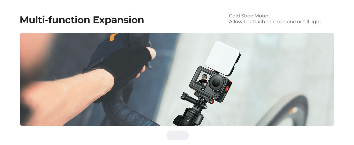 [Expand Your Creativity]: Equipped with a cold shoe mount and a 1/4" screw interface, it ready to connect a wide range of accessories like microphones, fill lights, tripods, and selfie sticks. The built-in quick-release design allows for fast transition between handheld and mounted setups.