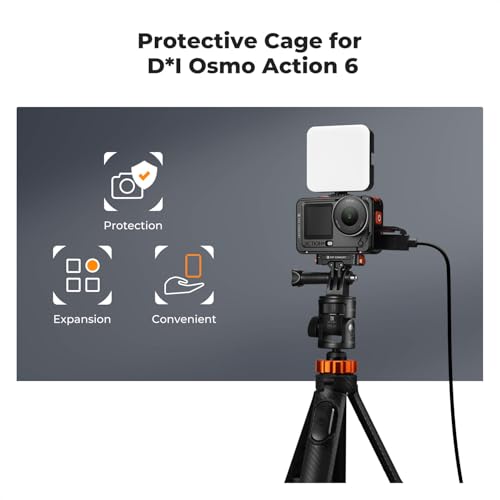 [Precision-Engineered for DJI Osmo Action 6]: This lightweight yet durable aluminum alloy cage from K&F CONCEPT offers full-body protection without sacrificing accessibility. Designed for creators, it expands your filming possibilities with multiple mounting points while allowing uninterrupted use of all camera functions.