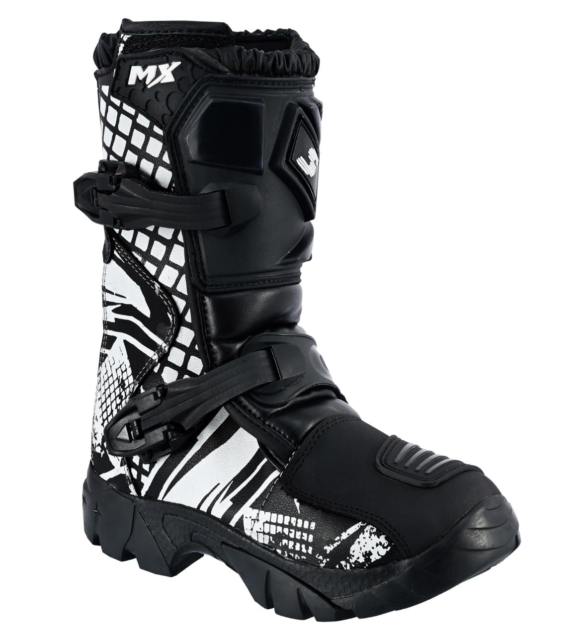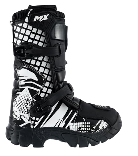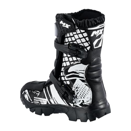 Kids Black & Whtie Real Leather Off – Road Motorbike/Motocross/Motorcycle Cubs MX Sports Shoes/Boots