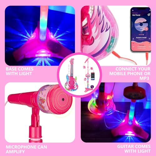 Kids Electric Guitar|Guitar and Microphone for Kids, Toy with Music & Light, Adjustable Height 2 in 1 Microphone with Stand, Learning Toy Instruments