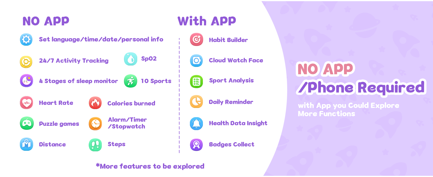 - [Dual Mode Options] The Boost 3 kids' fitness tracker offers both standalone mode and app-connected mode, allowing flexible switching based on your needs. For app connectivity, download BIGGERFIVE—ensure your smartphone runs Android 8.0+ or iOS 13.0+ for compatibility.