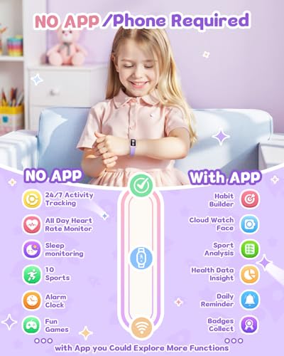 Kids Fitness Tracker Watch with Amoled Screen, Activity Tracker No Phone Needed, Heart Rate Sleep Monitor, 3ATM Waterproof, Pedometer, Alarm Clock, 3 Games, Step Counter Watch for Girls 5-1