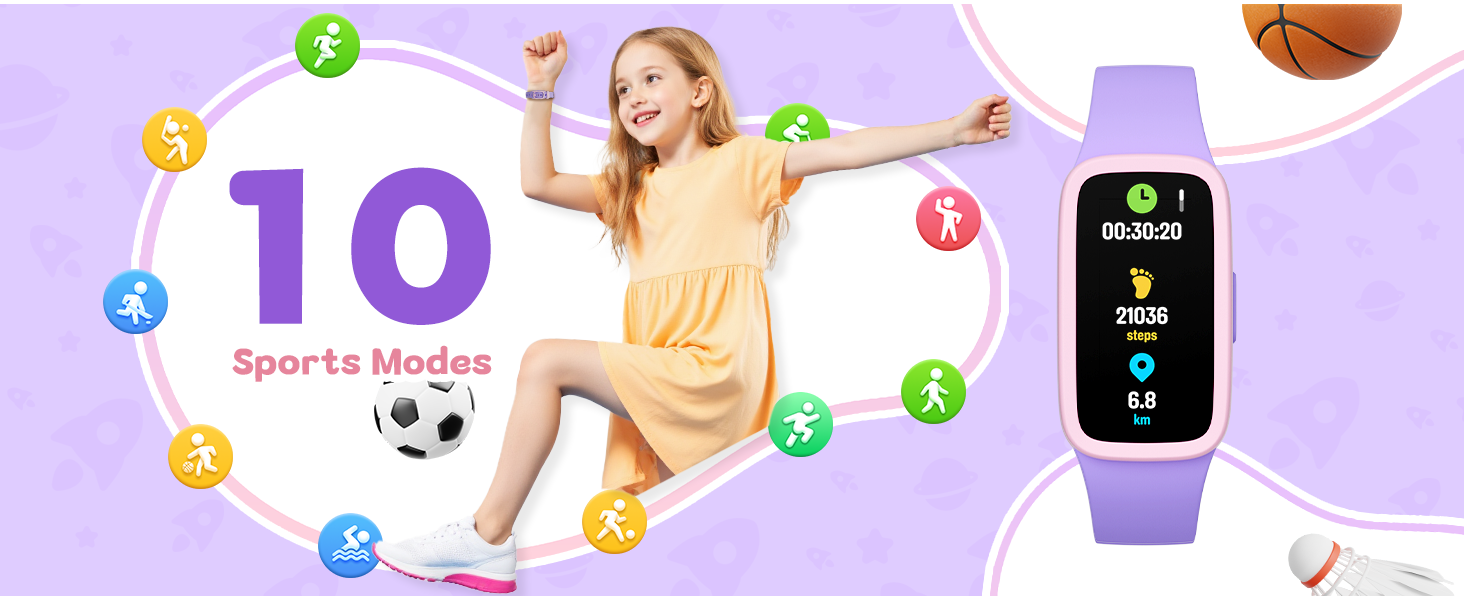 - [Daily Activity Tracking & 10 Sports Modes] The Boost 3 tracks steps, distance, calories, and active time in real time, helping you easily monitor daily activity data. It supports ten common sports modes, including running, walking, cycling, swimming, dancing, baseball, basketball, soccer, gymnastics, and hockey. Perfect for active kids who love sports!
