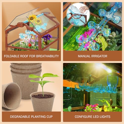 Kids Plant Growing Kit, Grow House Kids Plant Growing Kit with Irrigation System, Educational Gardening for Boys and Girls, without Seeds and Soil, Double-Deck Desig