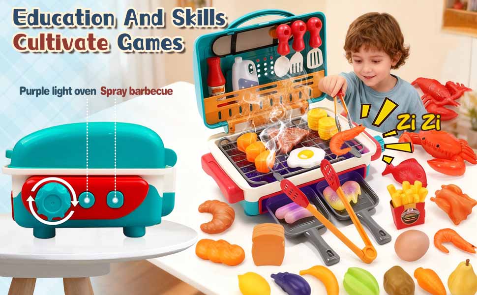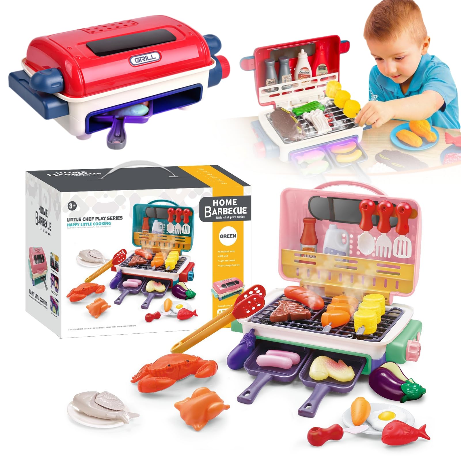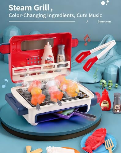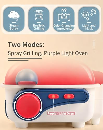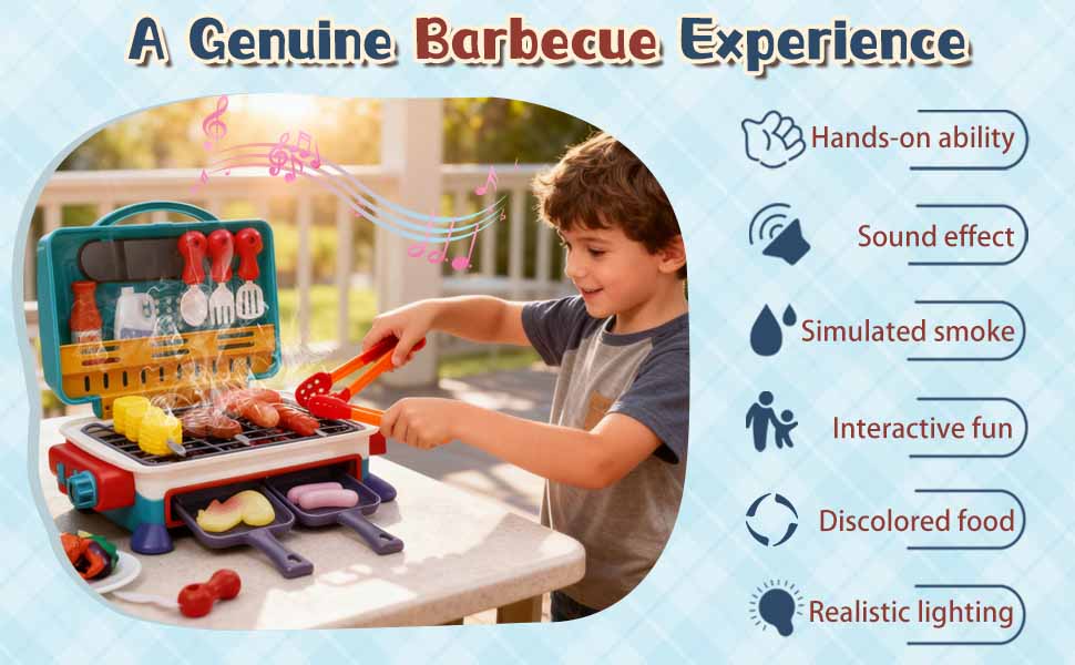 Realistic BBQ Experience: Ignite excitement with sizzling sound effects, glowing grill lights, and real steam (activate via water-release switch)! These lifelike features mimic a true cookout, sparking imaginative play and sensory engagement