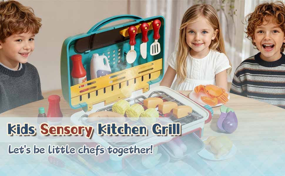 Safe & Durable Construction: Built with child-safe ABS materials and spill-resistant design, this grill set ensures worry-free play. Perfect for tiny hands, Magicmeals Kids Sensory Kitchen is sturdy enough to withstand endless BBQ parties and outdoor adventures