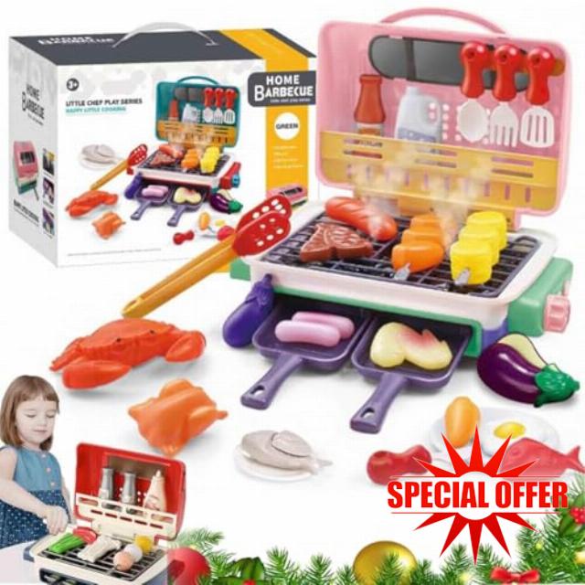 Safe & Durable Design: Made with ABS material and spill-protection features, built for long-lasting fun. barbecue grills for kids Kids Grill Playset with Smoke Sound Light