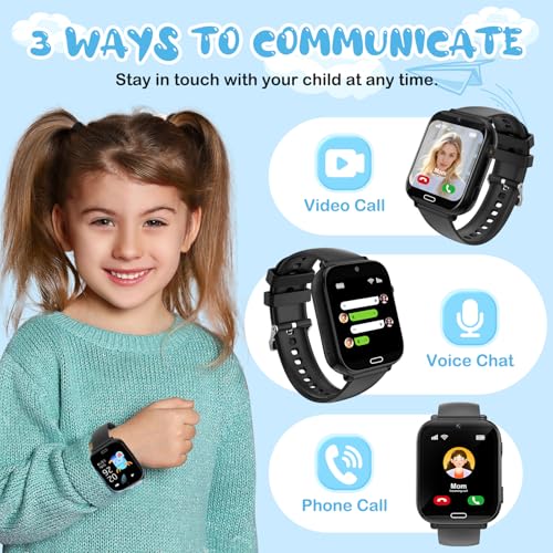 Kids Smart Watch Boys Girls 4G, Kids GPS Tracker Watch Phone with Video Call SOS Game Voice Chat School Mode Camera for Boys Girls Gifts