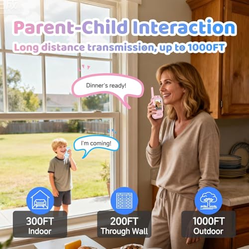- STABLE COMMUNICATION, COVERING INDOOR AND OUTDOOR AREAS: With excellent communication distance: up to 100 meters in indoor/neighborhood environments, and up to 400 meters in open outdoor environments. Whether it's going up and down stairs at home, playing in the courtyard, traveling, shopping malls, camping and other scenes, clear and stable connections can be maintained.