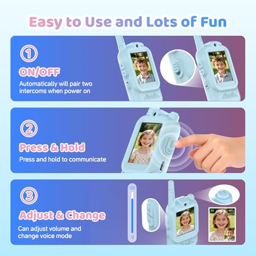 - VIDEO CALL, FACE-TO-FACE INTERACTION: Say goodbye to traditional one-way voice communication! The innovative children's walkie talkie is equipped with a real-time video screen that supports face-to-face communication, turning backyard hide and seek and room exploration into vivid and intimate interactions. It is an ideal holiday and birthday gift designed specifically for children aged 3-12.