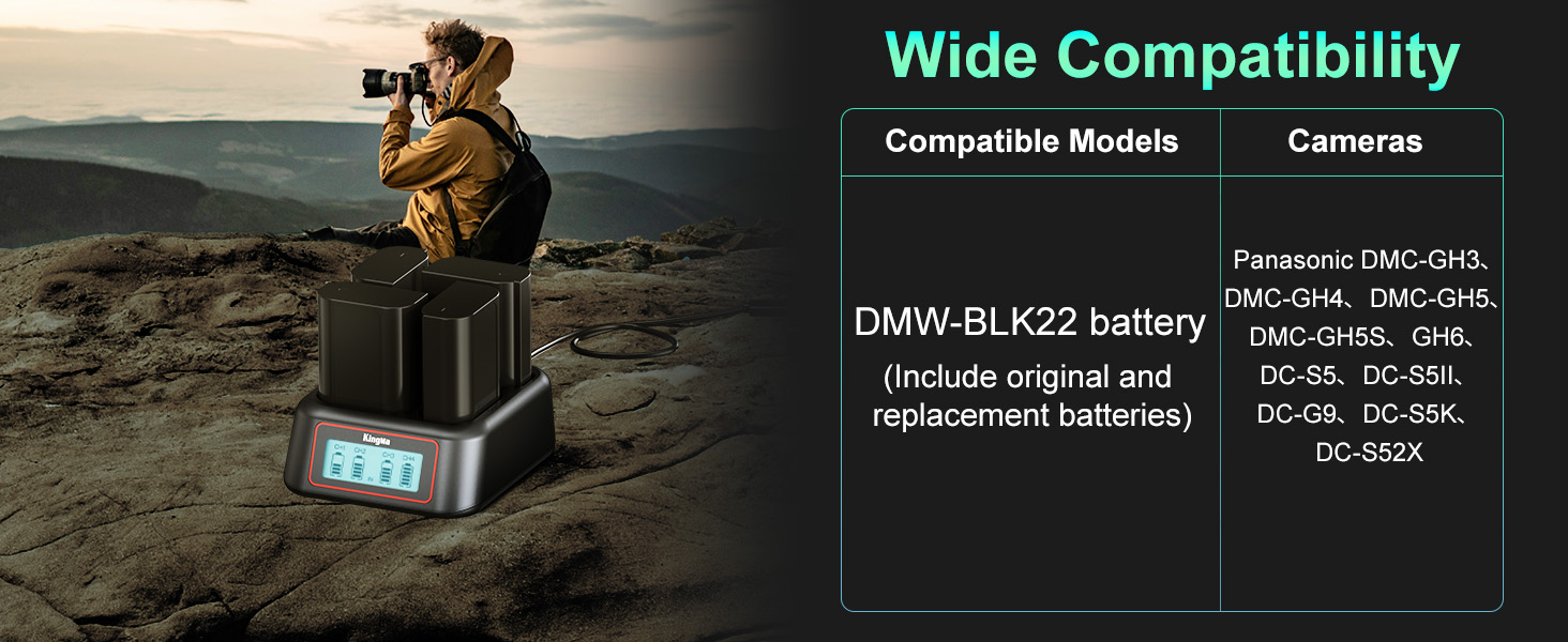 - 【Wide Compatibility】This charger is fully compatible with Lumix camera original batteries, specifically designed for popular camera models such as the Panasonic Lumix DMC-GH3, DMC-GH4, DMC-GH5, DMC-GH5S, DC-GH6, DC-S5, DC-S5M2, DC-G9, DC-S5K, DC-S5M2X.