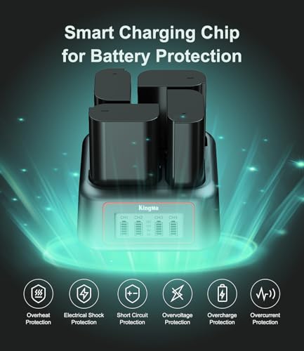 - 【Smart Charging Technology】Equipped with independent smart charging management chips, this camera battery charger auto-detects input voltage and adjusts charging speeds (fast/slow mode) to protect battery health. The ABS+PC fireproof housing adds an extra layer of security, ensuring reliable performance for both daily use and professional environments.