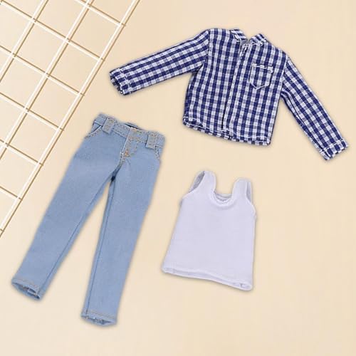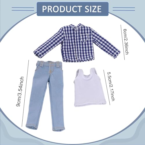 - 【Casual and Stylish Design】: The 1:12 Scale Mans Figure Clothes feature a vest shirt paired with jeans, offering a casual and stylish look for male dolls in various display scenarios.