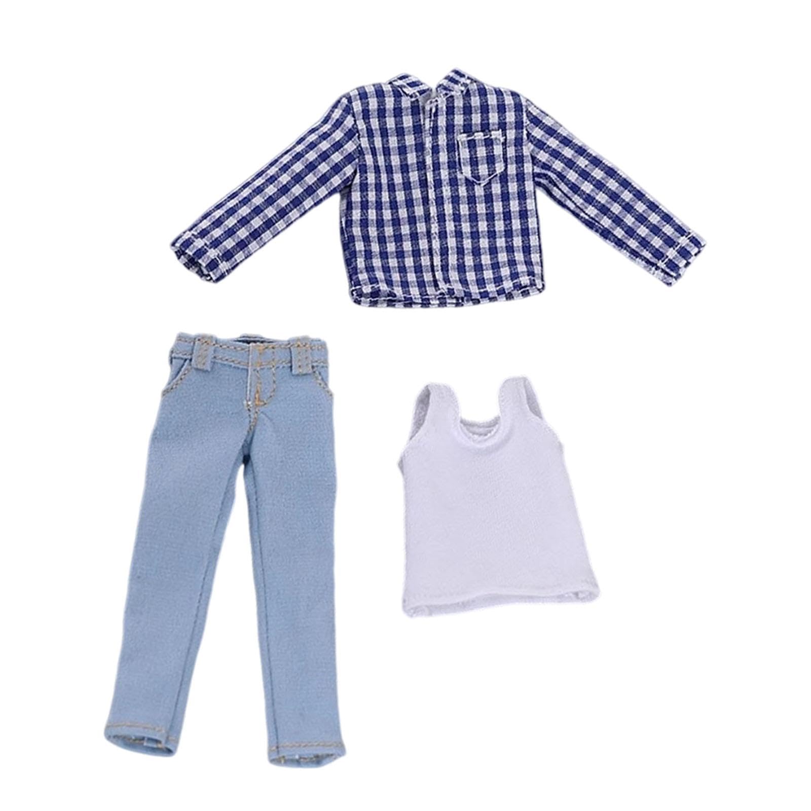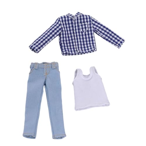kowaku 1/12 Scale Male Figure Clothes Clothing Trendy Dress up Men's Casual Outfits Costume for 6inch Male Action Figures Body, Blue Grid