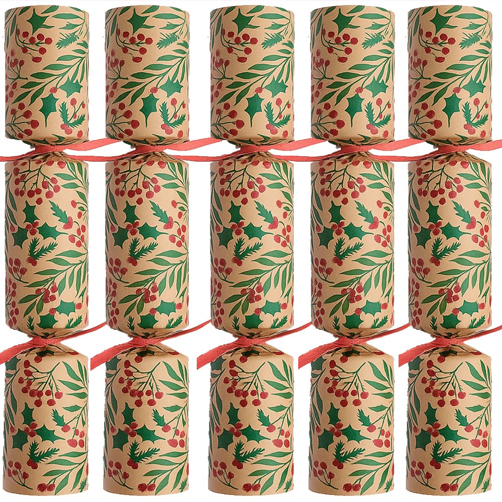 Kraft Holly Eco Christmas Crackers – Box of 100 – Catering Bulk Pack