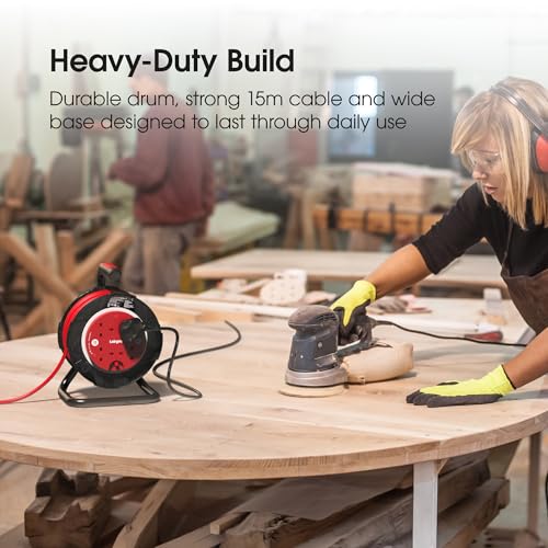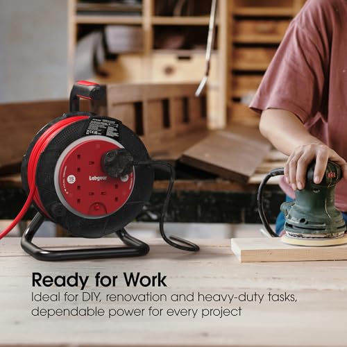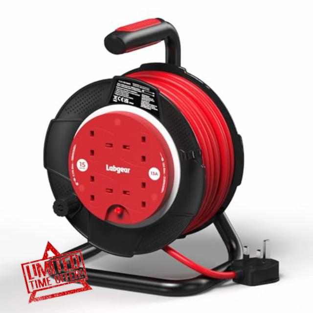 - ✔️ HEAVY-DUTY BUILD: The Labgear heavy-duty 15m extension lead is built to handle demanding tasks. With a durable drum, robust steel frame and wide base, it provides reliable stability and strength for daily use in workshops, garages, and DIY projects.