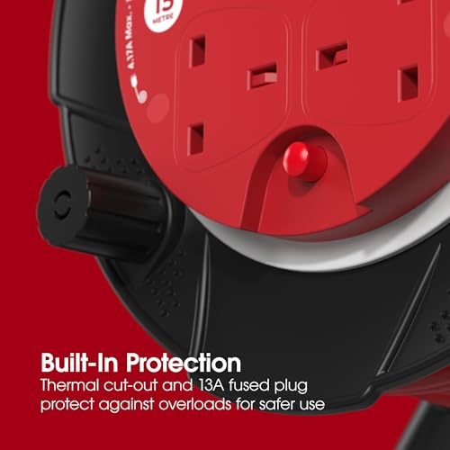 - ✔️ SAFETY CUT-OUT PROTECTION: Designed for safe operation, the Labgear cable reel features a built-in thermal cut-out and 13A fused plug. These prevent overheating and overloading, giving you complete peace of mind when powering tools, lights, or appliances.