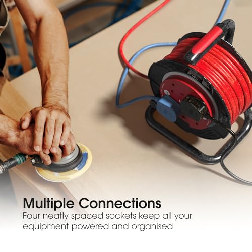 - ✔️ FOUR POWER SOCKETS: The Labgear 4-socket cable reel provides efficient multi-tool power management. Keep your workspace organised by running multiple devices simultaneously, perfect for home improvement, workshop, and trade environments.