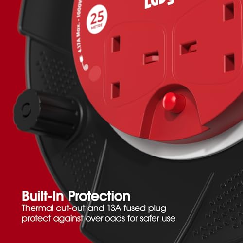 - ✔️ SAFETY CUT-OUT PROTECTION: Designed for safe operation, the Labgear cable reel features a built-in thermal cut-out and 13A fused plug. These prevent overheating and overloading, giving you complete peace of mind when powering tools, lights, or appliances.