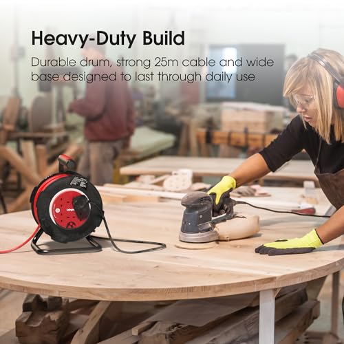 - ✔️ HEAVY-DUTY BUILD: The Labgear heavy-duty 25m extension lead is built to handle demanding tasks. With a durable drum, robust steel frame and wide base, it provides reliable stability and strength for daily use in workshops, garages, and DIY projects.