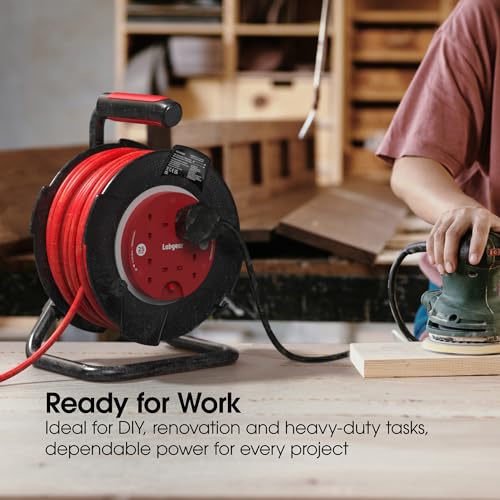 - ✔️ FOUR POWER SOCKETS: The Labgear 4-socket cable reel provides efficient multi-tool power management. Keep your workspace organised by running multiple devices simultaneously, perfect for home improvement, workshop, and trade environments.