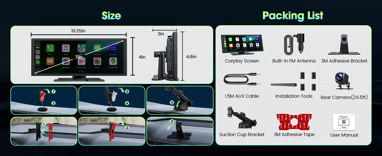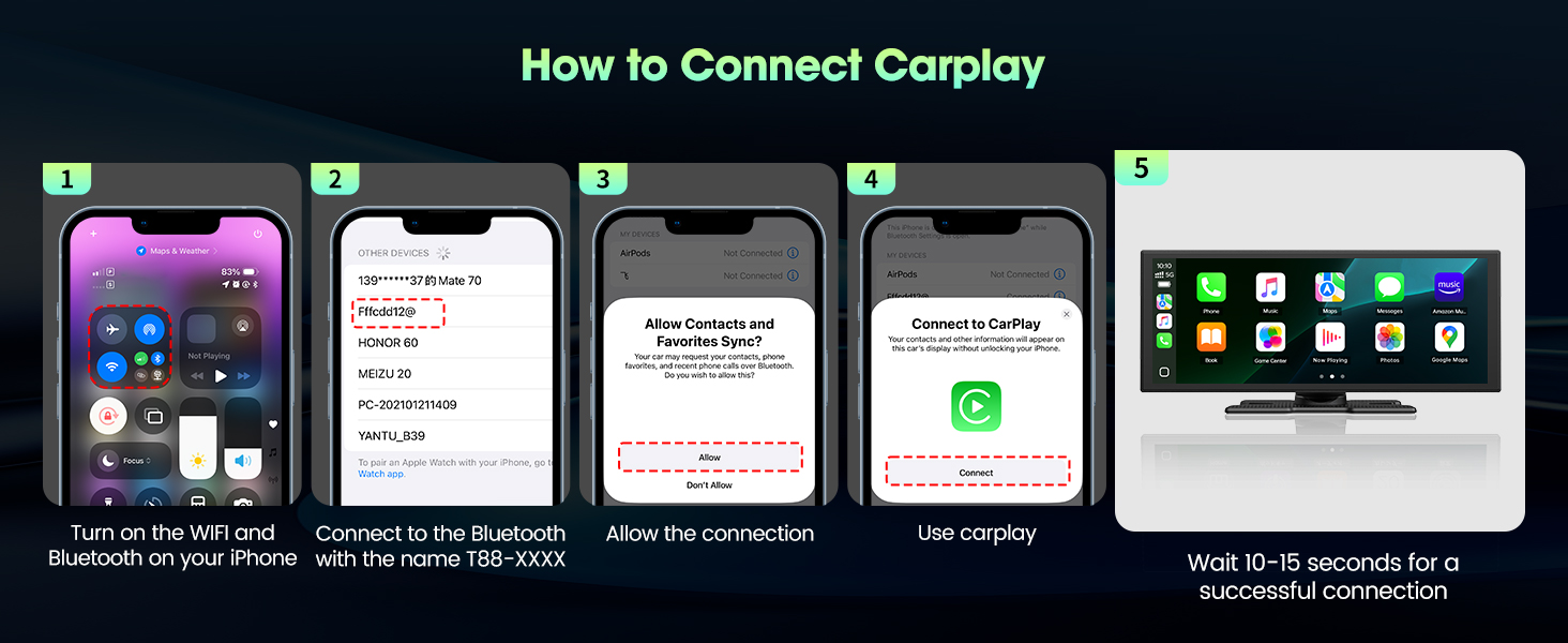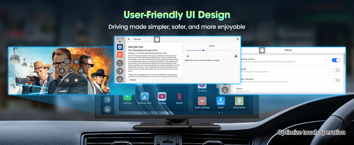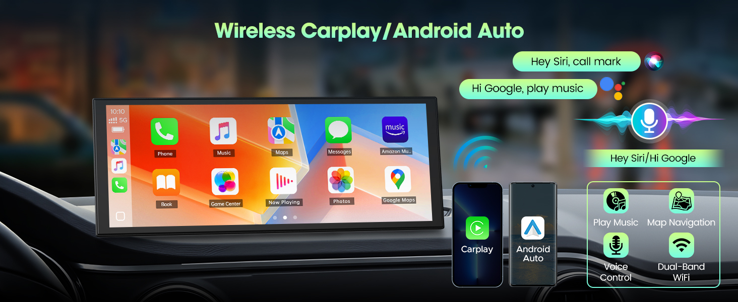 - 【 – & – 】 Say goodbye to buffering and weak signals. With dual-band WiFi, your wireless Apple CarPlay navigation stays seamless even while streaming HD video. The innovative split-screen feature lets the driver follow directions safely while the passenger enjoys movies or shows — keeping everyone content and the journey uninterrupted