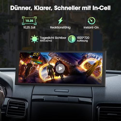 - ✨【 – : , , 】 Tired of squinting at tiny, laggy screens? Upgrade your drive with a stunning 10.25" in-cell display—ultra-thin, 1920×720P clarity, ultra-responsive touch. Its sleek narrow bezel pulls you into sharp maps, vivid videos, and smooth control—making every ride feel first class