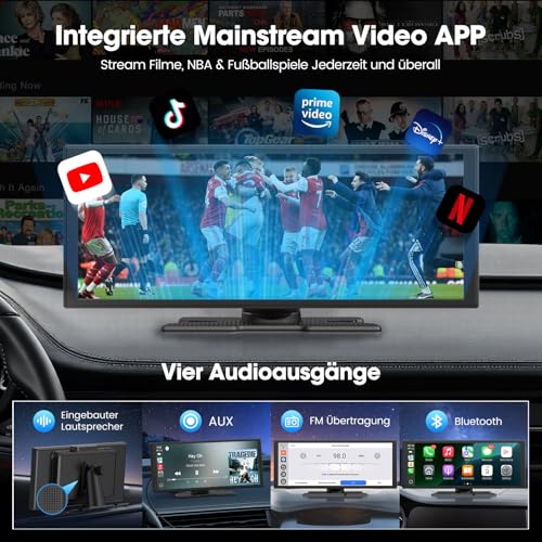 LAMTTO Carplay Screen with YouTube Net-flix TikTok, 10.25'' Wireless A-pple CarPlay & Android Auto Display with Rear Camera Built-in Apps Split-Screen Dual Bluetooth Navigation for iOS 10+ Android 11+