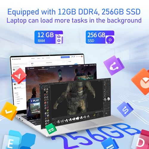 【Massive Storage: 12GB DDR4 RAM + 256GB SSD】This 15.6inch laptop equipped with 12GB DDR4 high-speed memory, it greatly reduces power consumption while achieving unprecedented running speed. Booting is completed instantly, and multitasking can be easily handled. With a 256GB M.2 SSD solid-state drive, the sequential reading speed is greatly improved, the system runs smoothly, and the file transfer is as fast as lightning. It can easily handle complex graphics processing and big data analysis tasks. Not only that, it also supports TF card expansion.