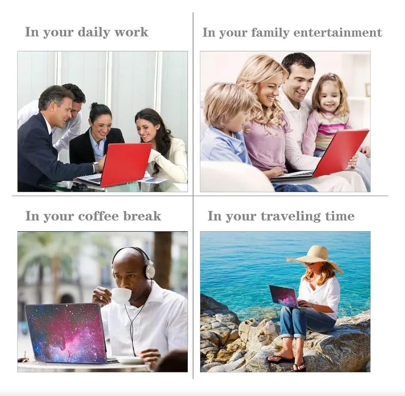 Unique design with two elastic rubber bands could solve the problem of loose cover effectively in the process of using laptop (This case not support “Tablet model”).