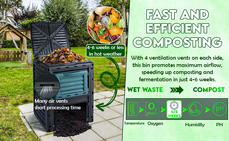 ECO FRIENDLY – Stay eco friendly and self sufficient thanks to 300L garden compost bin.